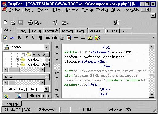 EasyPad je český freewarový non-wysiwyg HTML editor pro Windows 95/98/NT. K hlavním funkcím patří pomocník pro vytvoření nové stránky, pomocník pro vytvoření tabulky, seznam HTML značek s možností okamžitého vložení, rychlý přístup k nejpoužívanějším HTML značkám z palety, zpětná editace HTML značek, možnost definice libovolného množství externích HTML prohlížečů, atd.