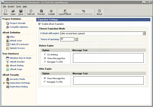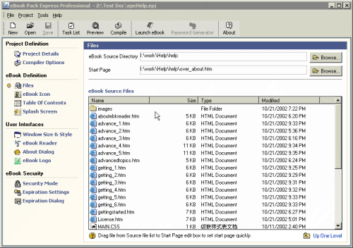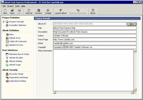 eBook Pack Express umí z HTML, JavaScript, VBScript a ActiveX souborů vytvořit samostatnou zkomprimovanou a šifrovanou elektronickou knihu nebo prezentaci, u které lze nastavit uživatelské rozhraní, zabezpečení, dobu expirace atd.