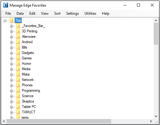 EdgeManage je utilita pro správu záložek pro Microsoft Edge. Umožňuje vám snadno uspořádat a spravovat své záložky, složky a oblíbené položky. Díky EdgeManage můžete: