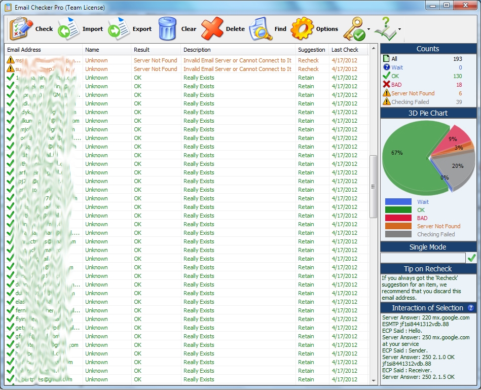 Email Checker Pro je šikovná a spolehlivá aplikace určená k ověření, zda existují specifikované e-mailové adresy.