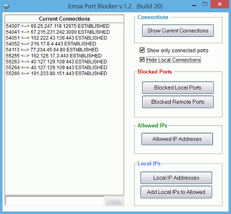 Emsa Port Blocker je nástroj pro blokování protokolu TCP. Blokuje nežádoucí přístup tcp z nebo do počítače pomocí přizpůsobitelných pravidel. Nejde o firewall, ale jedná podobným způsobem.