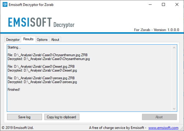 Emsisoft Decryptor for Zorab je bezplatný nástroj, který vám umožní obnovit soubory zašifrované ransomwarem Zorab. Ransomware je druh malware, který zašifruje soubory a požaduje výkupné za jejich dešifrování. Emsisoft Decryptor for Zorab používá dešifrovací klíče, které byly nalezeny v ransomwarových databázích, k dešifrování souborů.