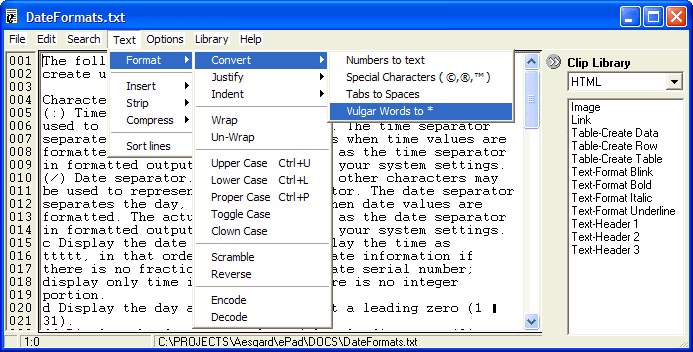ePad představuje odlehčenou variantu textového editoru, avšak s mnoha užitečnými funkcemi. Nabízí několi silných vlastností: