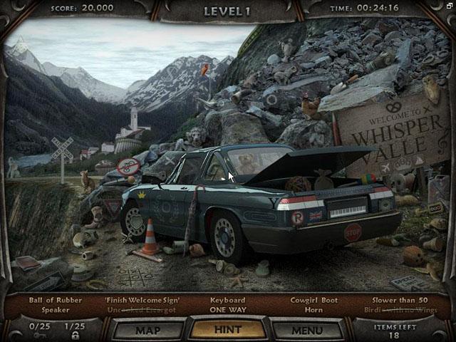 Ocitnete se v tajemné a opuštěné horské vesnici Whisper Valley. Vašim úkolem bude hledat kolem 2000 skrytých objektů, řešit různé hádanky a úkoly, a tak najít cestu ven z vesnice.