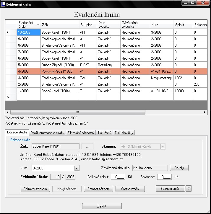 Program Evidence autoškoly slouží k vedení kompletní agendy autoškoly a nahrazuje její papírově vedenou verzi. Spolu s vhodně zvoleným účetním programem umožňuje vést celou agendu elektronicky.