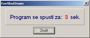 Program při vypínání nebo restartování systému spustí jiný program, který zadáte jako první parametr. Před tímto spuštěním vyčká 3 vteřiny, aby bylo možno spuštění přerušit. Pokud bude spouštění tlačítkem Zrušit přerušeno, dojde pouze k ukončení systému. Po spuštění ExeShutDownu není zobrazen žádný dialog, program zůstává v paměti a čeká na zprávu systému oznamující vypínání nebo restart počítače. Program můžete využít k zálohování dat při vypínání systému nebo provedení jiných úkonů, které se mají provést až při ukončování práce s PC.