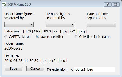 EXIF ReName Vám dává možnost přejmenovat soubory obrázků, které obsahují EXIF-Data. EXIF informace je vytvořena pomocí fotoaparátu, když je snímek pořízen. Například datum a čas, kdy byl snímek pořízen.
