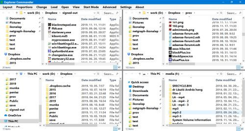 • Čtyři panely současně:umožňuje zobrazit až čtyři panely současně, což usnadňuje porovnávání souborů a složek.