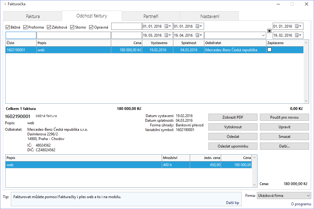 | Detail produktu Fakturačka | |