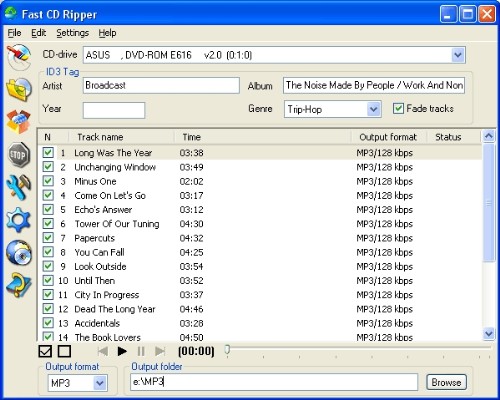 Fast CD Ripper je kvalitní ripovací aplikace pro konvertování vaši sbírky audio CD do různých populárních audio formátu WMA 9, OGG, WAV, APE, FLAC a MP3. Program podporuje ID3 Tag v2. Informace o audio CD můžete stahovat z internetové databáze CDDB.