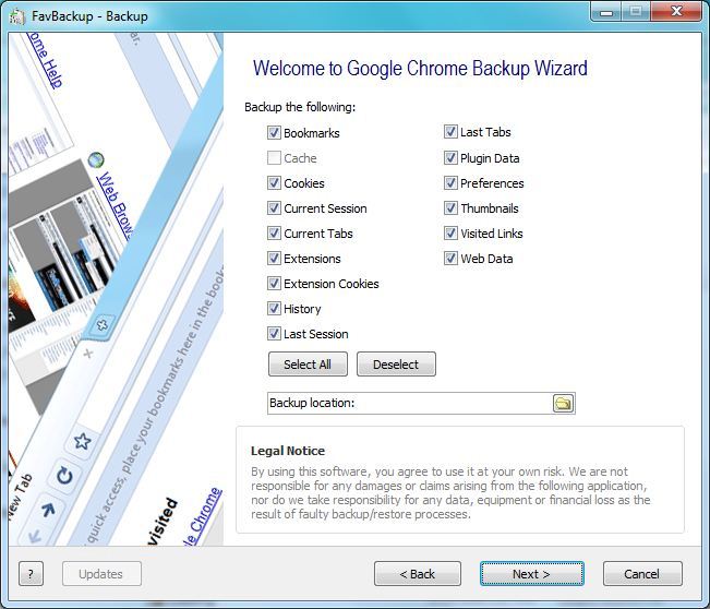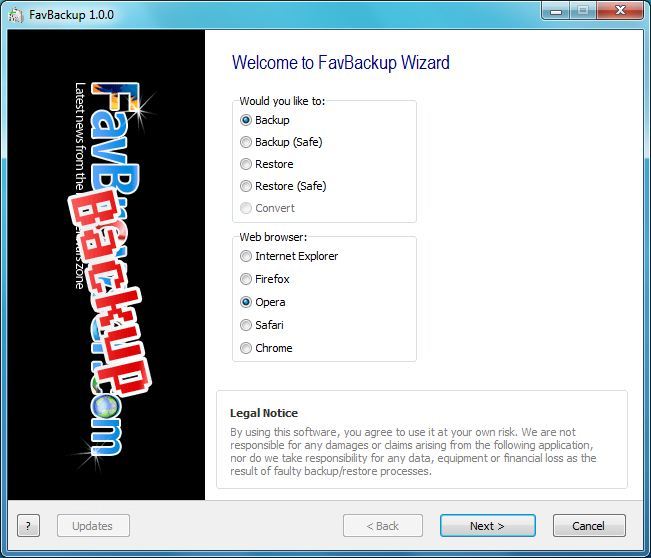 FavBackup je snadný řešení pro zálohování a obnovení nastavení prohlížečů a ostatních dat v sytému Windows 7/Vista/XP/2000.