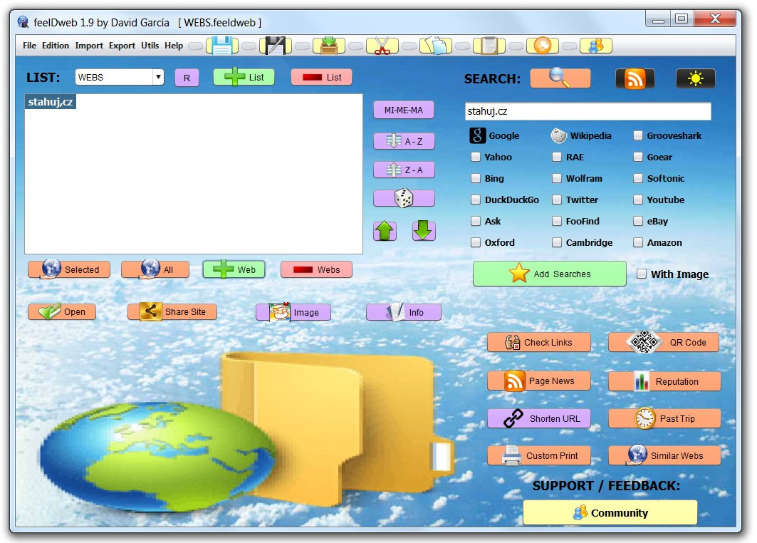 FeelDweb nabízí také několik dalších funkcí, jako je podpora záznamu schránky Windows, vyhledávání stránek na různých webových stránkách a export záložek do různých formátů.
