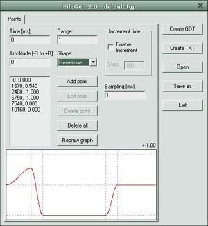 Tento program byl vytvořen pro generování speciálních souborů .GDT, pomocí nichž se ovládají různé měřící a zkoušecí systémy. V programu lze navrhnout požadovaný průběh tvořený určitým počtem bodů, které jsou pak spojeny buď přímou nebo kosinovou čárou.