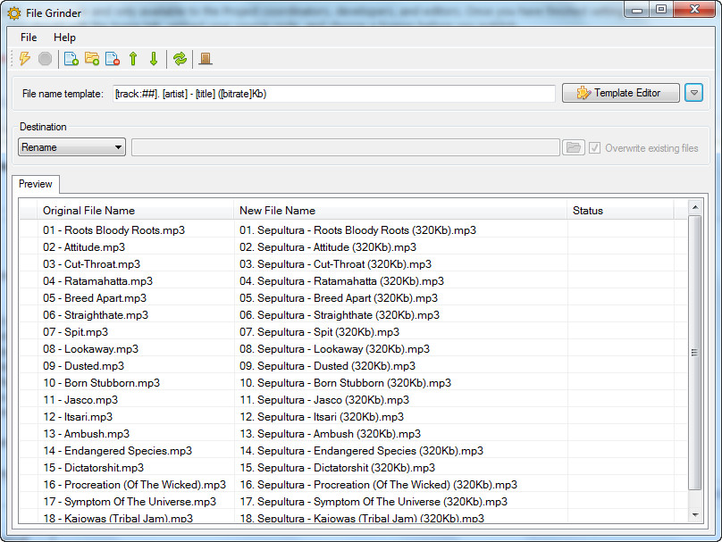FileGrinder je nástroj na přejmenování souborů, který nabízí mnoho možností pro změnu názvů vašich souborů. Podporuje širokou škálu souborových formátů, včetně audio, video, JPEG a HTML. Program také podporuje metadata, takže můžete využít informace o souborech, jako je datum vytvoření, datum poslední úpravy nebo autor, při vytváření nových názvů.
