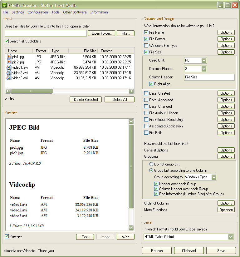 Filelist Creator je šikovný prográmek vytvořený pro tvorbu seznamu vašich lokálních souborů obsahující veškeré informace o nich. Tento seznam lze uložit jako textový soubor, obrázek nebo HTML dokument.
