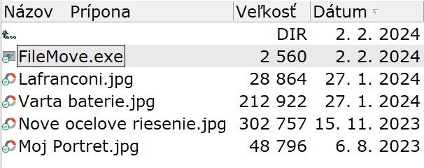 Jak tedy program používat? Stačí soubor FileMove.exe zkopírovat do složky kde se nachází fotografie, tedy do složky se soubory *.jpg, program po spuštění projde všechny sobory jpg a přesune je do složky kterou vytvoří dle společného datumem pořízení. Jednoduché, rychlé, efektivní. Nová verze podporuje jméno adresáře s komentářem.