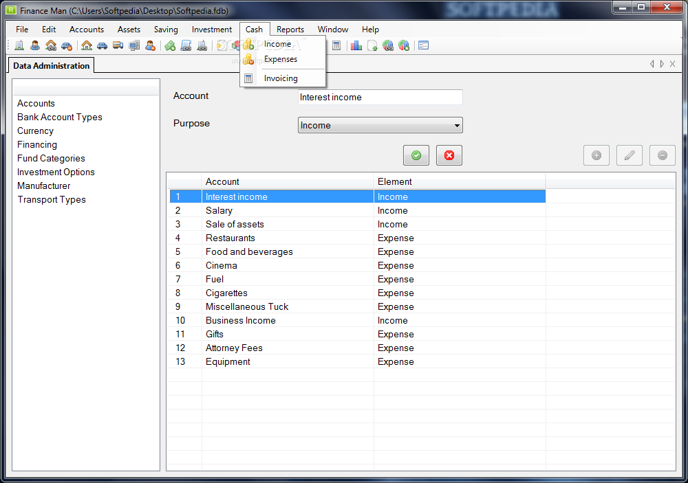 Aplikace Finance Man poskytuje nástroje pro snadnou správu vašich financí. Aplikace má přehledné uživatelské rozhraní s intuitivním ovládáním. Jsou zde k dispozici nástroje pro generování různých raportů, sledování stavu účtů v reálném čase a tvorbu grafů.Hlavní vlastnosti: