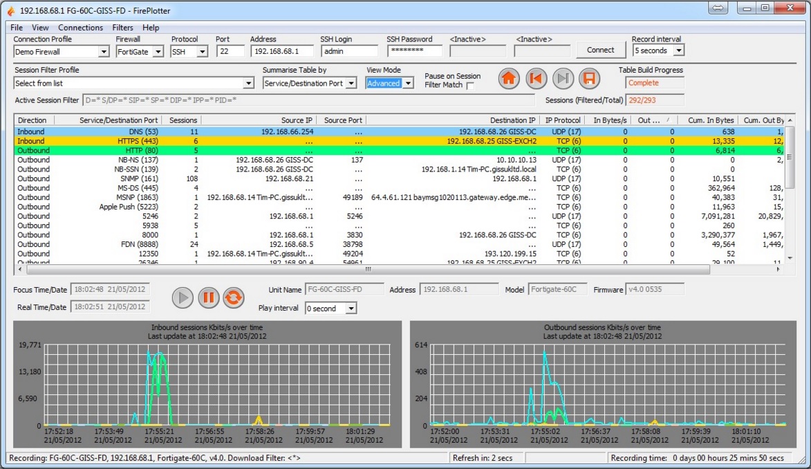 FirePlotter je aplikace, která spravuje vizualizaci trafficu (provozu) firewallu, analyzuje šířku pásma, pracuje jako QoS (Quality of Service) utilita a monitoruje připojení Cisco ASA/PIX firewallu nebo FortiNet FortiGate firewallu. Zaznamenává útoky hackerů, narušení bezpečnosti, nevhodné používání internetu vlastními zaměstnanci atd.