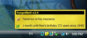 ForgetNot je software pro připomínání událostí. Pomáhá vám zůstat v obraze a nezapomenout na důležité termíny, jako jsou narozeniny, schůzky a úkoly. ForgetNot je snadno použitelný a můžete jej přizpůsobit svým potřebám. Můžete přidat události ručně nebo je importovat ze svého kalendáře. ForgetNot vám také pošle upozornění předem, abyste se mohli na událost připravit. ForgetNot je užitečný nástroj pro každého, kdo chce zůstat organizovaný a efektivní.
