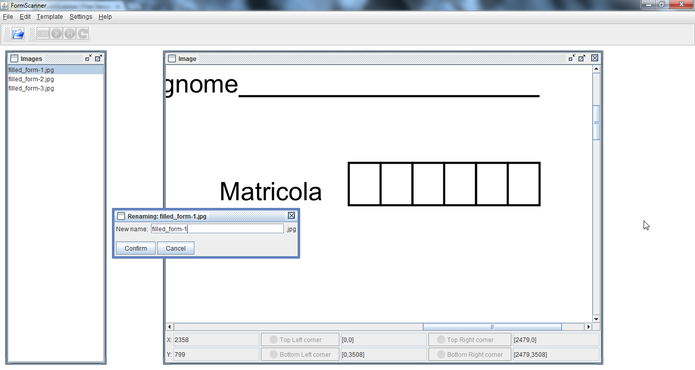 FormScanner je nástroj, určený pro skenování vyplněných polí formulářů a testů. Vytváří technologii OMR (Optical Mark Recognition), která slouží k optickému rozpoznávání značek. Nástroj obsahuje prostředky pro tvorbu vlastních šablon z libovolných zdrojových souborů (JPG, BMP, GIF, PNG a WBMP). Nesmíte zapomenout na nastavení typu polí a specifikovat možnosti výběru více odpovědí.