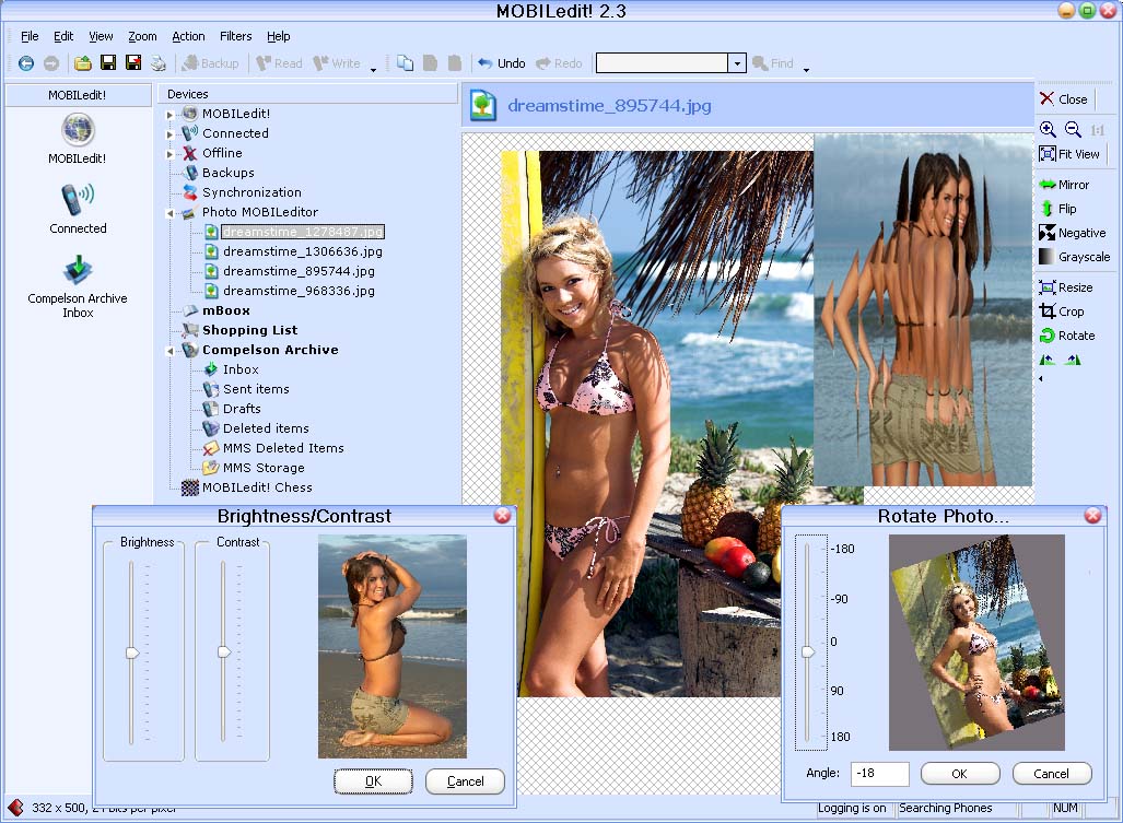Skvělý editor fotografií nabízející řadu akcí a efektů aplikovatelných na fotografie pořízené pomocí mobilních telefonů. Vyžadován MOBILedit! 1.92 a vyšší.