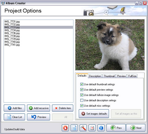 S tímto Album Createrem můžete vytvářet úžasné fotoalba, které je možno prezentovat na webu nebo vypálit na CD. Hlavní rysy programu: