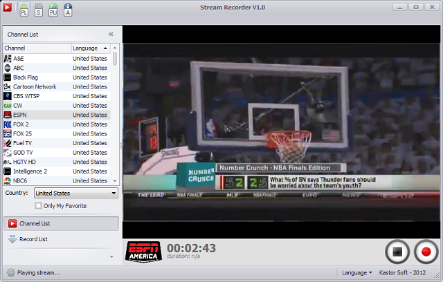 Free Stream Recorder umožňuje sledování a záznam více než 500 televizních stanic na vašem počítači. Nabízí tak možnost nahrávání oblíbených pořadů a uložit je do počítače pro pozdější zhlédnutí.