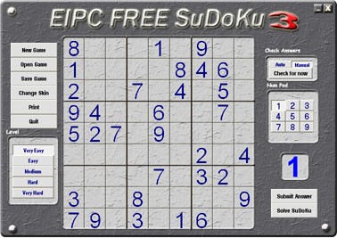 Free SuDoKu je skvělá logická hra, kde cílem je doplňování číslic od 1-9 do sloupců a řádků. Hru si můžete uložit, nastavit zobrazení, kontrolovat průběh hry automaticky nebo manuálně. Nastavit lze také vzhled z tří různých skinů. Hra je freeware.