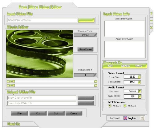 Free Ultra Video Editor výkonný video konvertor, který umožňuje provádět konverzi MPEG-1, MPEG-2, AVI (Windows Video), WMV (Windows Media Video) a ASF do AVI a WMV a další.