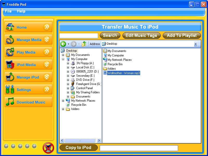 Froddle Pod je komplexní nástroj pro správu iPodu. Umožňuje přenášet multimediální soubory mezi počítačem a přehrávačem v obou směrech, a to jak hudbu, tak video. Nabízí i normalizaci hlasitosti skladeb, takže se vyhnete výrazným rozdílům mezi jednotlivými skladbami. Součástí je také úplná záloha celého obsahu iPodu a možnost jeho následné obnovy.