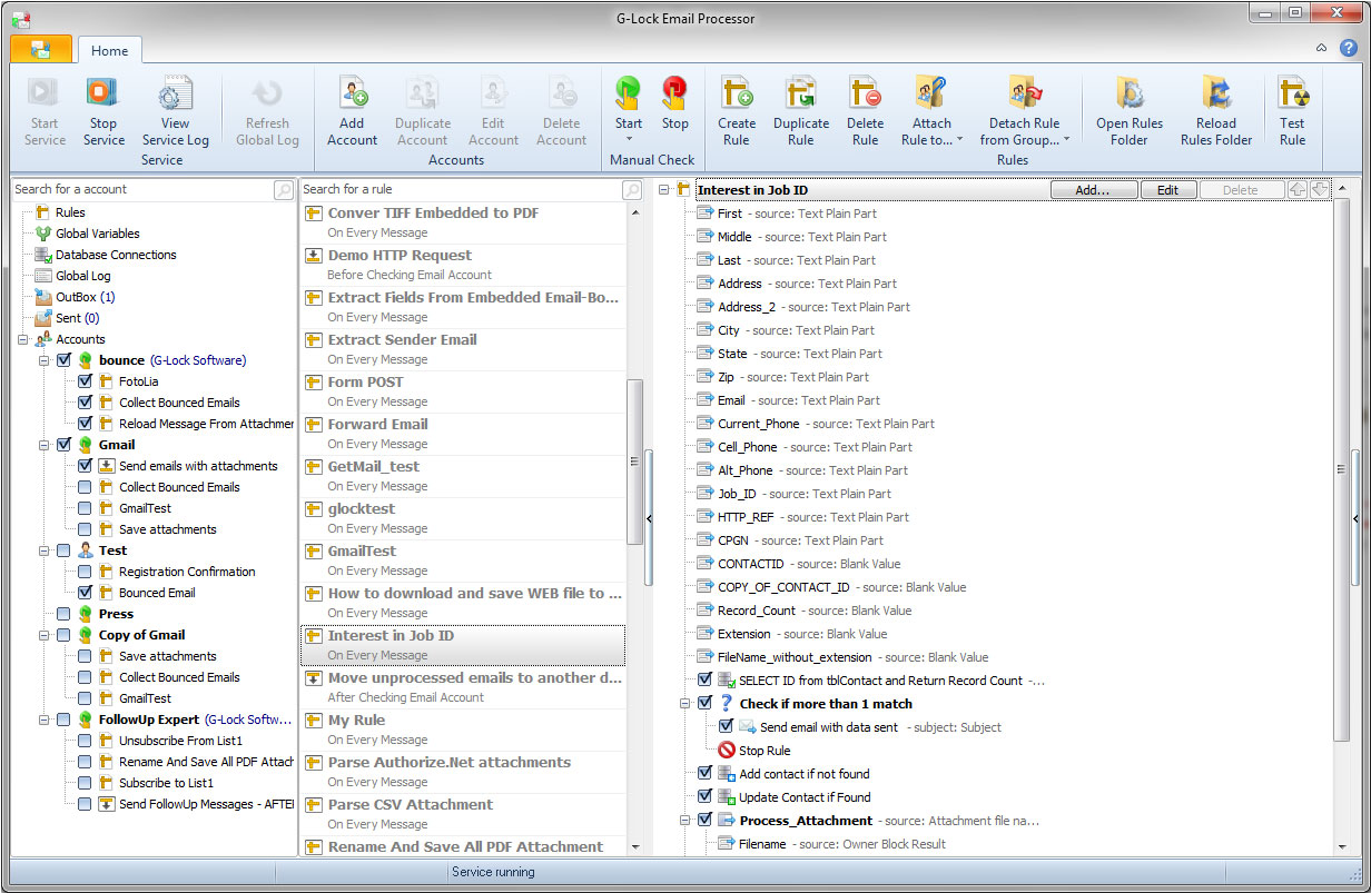 G-Lock Email Processor je program pro zpracování internetových emailů, umožňuje sledování neomezeného počtu POP3 účtů, extrahování informací ze zpráv a uložení do datového souboru.