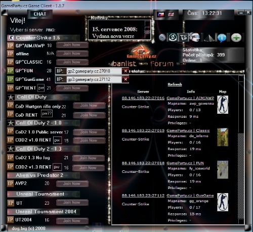 Client pro příme připojování na herní servery portálu GameParty.cz.