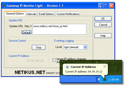 Gateway IP Monitor vás může e-mailem upozornit na změnu IP adresy, aktualizovat záznam DynDNS, spustit vlastní aplikaci (proces) nebo připojit IP adresu k souboru protokolu.