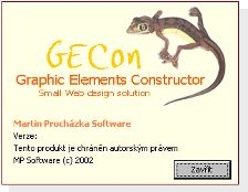 Tento nástroj umožňuje tvořit grafické elementy moderních internetových stránek. Nemusíte být grafik a přesto můžete vytvářet působivou grafiku Vašich stránek. program má jednoduché ovládání a jednotlivé grafické prvky vytváříte pouhým nastavováním parametrů jako je barva, velikost, styl, atd. Program Gecon také obsahuje nástroj pro rozřezávání předlohy na samostatné obrázky a umožňuje tak tvořit dělené klikací mapy, součástí programu je vysoce výkonný fotoeditor s mnoha efekty a kreslící program. Program Gecon podporuje tyto grafické formáty: GIF, JPG, BMP. S programem Gecon můžete pohodlně vytvářet tyto grafické elementy: Tlačítka, Oddělovací pruhy, rámečky, oddělovače odstavců(bullet), grafická počítadla přístupů na stránky a záložková tlačítka.