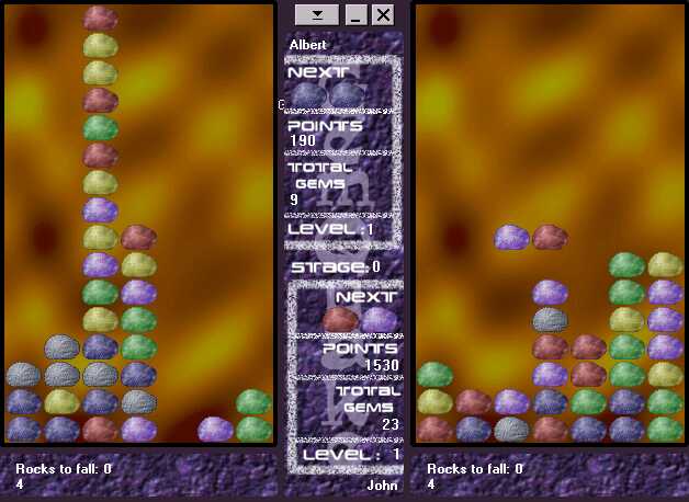 Vašim úkolem ve hře GemQuake je spojovat skupiny drahokamů stejné barvy. Hru může hrát jeden nebo dva hráči. Obsahuje několik levelů. Získejte co největší počet bodů!