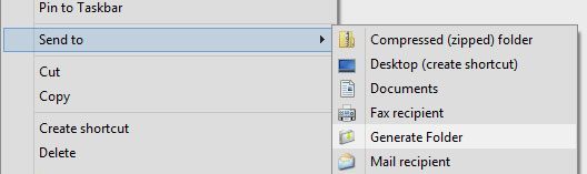 Generate Folder je malá aplikace na pomoc koncovým uživatelům vytvářet soubory do složky z názvů souborů v operačním systému Windows. Program se ovládá přímo z kontextového menu na pravém tlačítku myši.