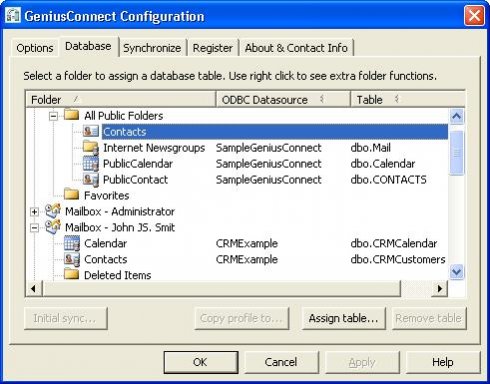 Genius Connect umožňuje synchronizaci Outlooku (Kontakt, Ukoly, Mail, atd..) uložených na lokálních stanicích (soubor .pst) nebo v MS Exchange s libovolnou databázi podporující ODBC (MS Access, MySQL, SQL Server...). Data (jméno, adresa, email ...) lze tak snadno synchronizovat. Program podporuje více složek, ochranu dat osobních kontaktů. Podporuje Microsoft® Outlook® 2000/XP/2003. GeniusConnect možnosti: