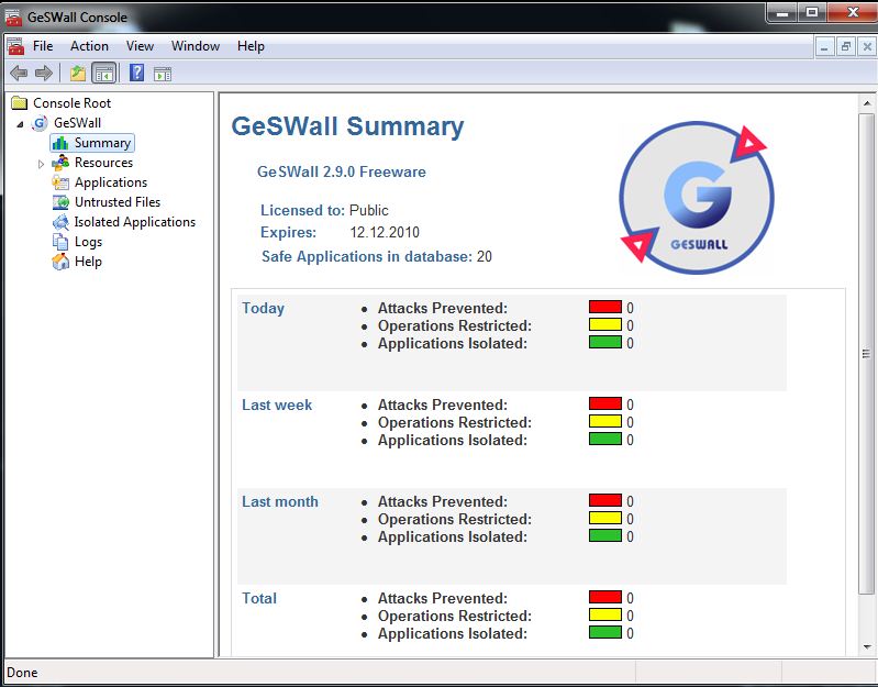 GeSWall je přehledná aplikace pro bezpečné surfování na internetu, sdílení souborů, chatování, otevírání emailových příloh. Aplikace hlídá neunstále registry a tím vás ochrání před instalací programů spyware, adware, keloggery, rootkity a jinými programy. Když firewall zjistí, že některý z programů přistupuje k systémovým souborům neoprávněně, tak zobrazí varovné okýnko a čeká na uživatelskou reakci.