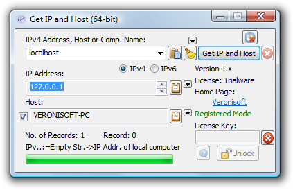 Get IP and Host je aplikace určená k získání IP adresy nebo jména hostitele (host name) počítače přes LAN místní síť. Před započetím procesu je nutné definovat jestli cílový PC používá adresu typu IPv4 nebo IPv6.