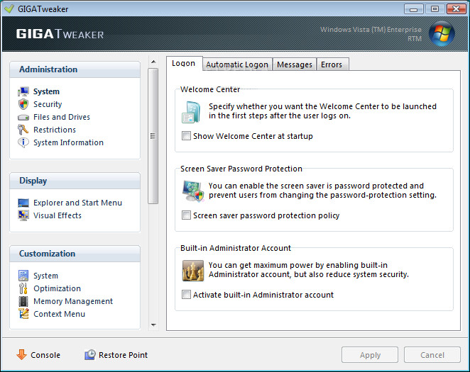 GIGATweaker je kompaktní a výkonný nástroj pro optimalizaci Windows. Je kompatibilní se dvěma posledními verzemi Windows a je jedním z nejlepších a nejrychlejších programů v tomto směru. GIGATweaker nabízí řadu funkcí, které vám pomohou zlepšit výkon vašeho počítače, například: