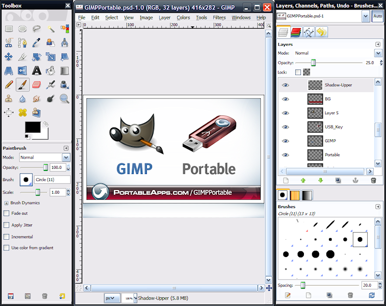 GIMP Portable je populární GIMP pro Windows editor obrázků, fungující jako přenosné aplikace, takže si své obrázky můžete brát sebou a kdekoliv je editovat.