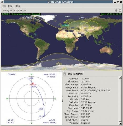 Gpredict je nástroj, který sleduje satelity a predikci oběžné dráhy. Sleduje libovolný počet satelitů a zobrazuje jejich pozici, společně s dalšími informacemi formou seznamů, tabulek, map nebo radarových snímků.