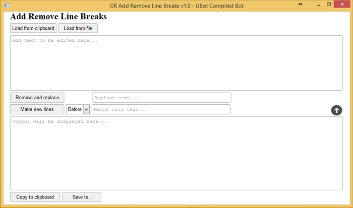 GR Add Remove Line Breaks je jednoduchý nástroj používaný k vyhledávání a odstranění prázdných řádek z vloženého textu. Text je možné načíst ze zvoleného souboru nebo jednoduše vložit ze systémové schránky.