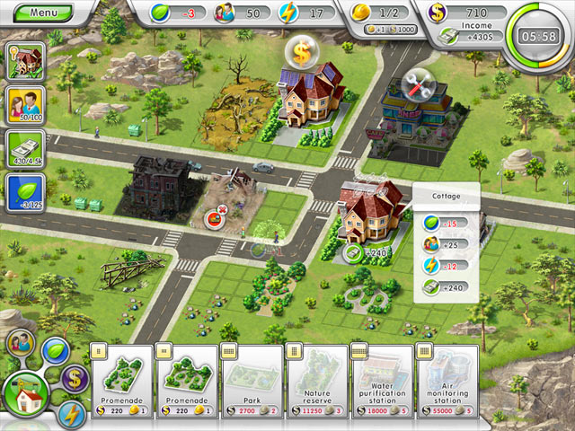 Green City 2 aneb zelené město. Je ekologická hra, ve které i sousední města pomáhájí renovovat staré budovy, čistí ulice, sbírají odpadky atd. Vašim úkolem bude stavět ekologické domy se solárními panely na střechách, sázet stromy a rostliny a naučit své občany novému životnímu stylu.