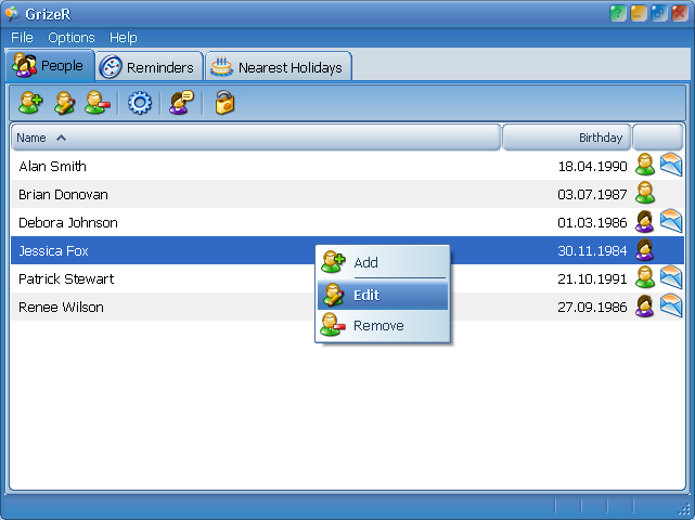 GrizeR jedinečná pomůcka pro připomínání státních svátků, jmenin a narozenin svých příbůzných a přátel!