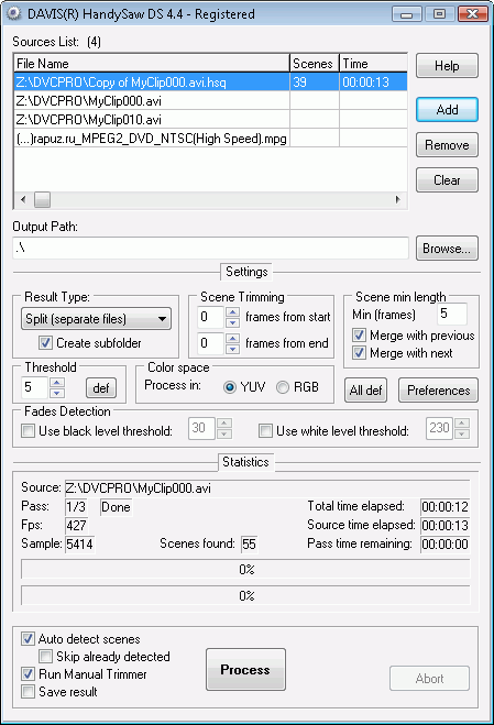 Optická - program analyzuje obsah videosouboru, zjistí změny scény a rozdělí původní video do samostatných scén. Pro tuto analýzu se používají pouze údaje videostreamu (časové kódy nebo jakékoliv jiné informace nejsou nutné).