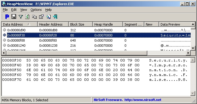 HeapMemView je malý nástroj, který umožňuje zobrazit obsah všech alokovaných bloků paměti, Vámi vybraného procesu, který se Vám načte po spuštění programu. Tento nástroj může být užitečný obzvlášť pro vývojáře, kteří potřebují sledovat únik paměti v jejich softwaru.