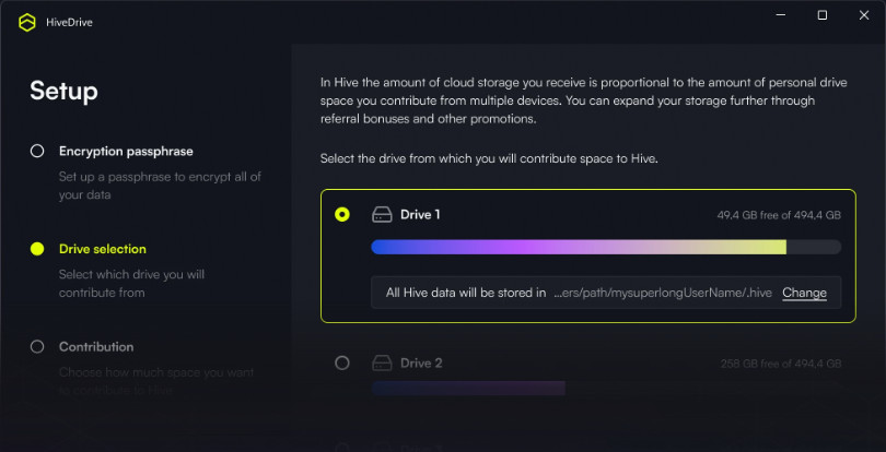 HiveDrive je decentralizovaná cloudová služba, která umožňuje bezpečné a soukromé ukládání souborů. Veškerá data jsou šifrována již na straně klienta, takže k nim mají přístup pouze uživatelé, kteří mají správný klíč. HiveDrive je ideální pro uživatele, kteří si cení bezpečnosti a soukromí svých dat.
