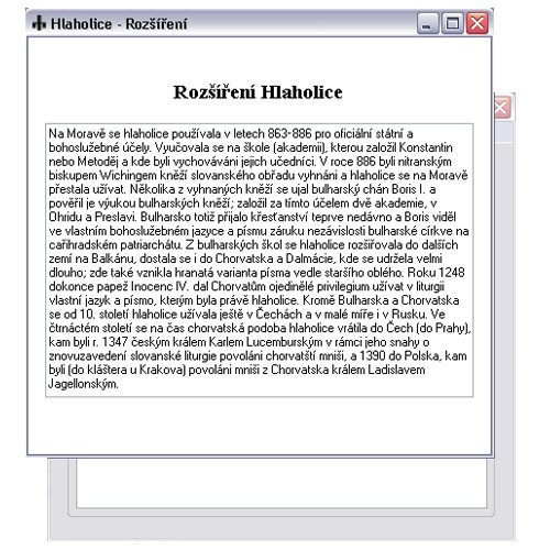 Tento software poskytuje informace o hlaholici, nejstarším slovanském písmu, a umožňuje překládat text z a do hlaholice.