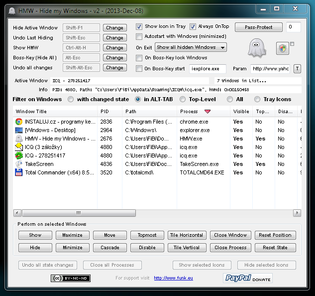HMW - Hide my Windows je aplikace, která umožňuje skrýt okna na Vaší ploše.